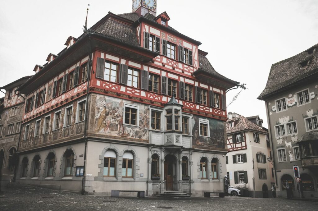 Eine einstündige Autofahrt bringt euch an die rund 60 Kilometer entfernte Schweizer Grenze, dort möchte ich euch das kleine Städtchen Stein am Rhein wärmstens an Herz legen. Westlich des Bodensees gelegen, ist sie für ihre gut erhaltenen mittelalterlichen Fachwerkhäuser und Fassadenmalereien bekannt. Ein ausgedehnter Spaziergang durch die kleinen Gassen der Innenstadt lohnt sich allemal. Nehmt euch genügend Zeit um die Kunstwerke an den Häuserfassaden zu betrachten, oder setzt euch in ein gemütliches Café und gönnt euch ein Stück Kuchen.