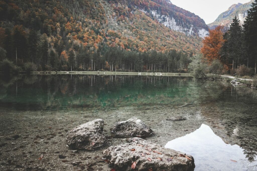 Mein Wandertipp für den See : Wer am frühen Vormittag kommt, hat den kleinen Spazierweg meist für sich allein. Parken könnt ihr am kostenpflichtigen Parkplatz, der leider relativ teuer ist, wenn man nicht vor hat den ganzen Tag zu bleiben. Nehmt als lieb gemeinte „Schwäbische Alternative“ das nahegelegene, uns allen bekannte Restaurant mit dem goldenen Buchstaben – schnappt euch einen Kaffee To go, wenn ihr möchtet und spaziert von dort aus los.
